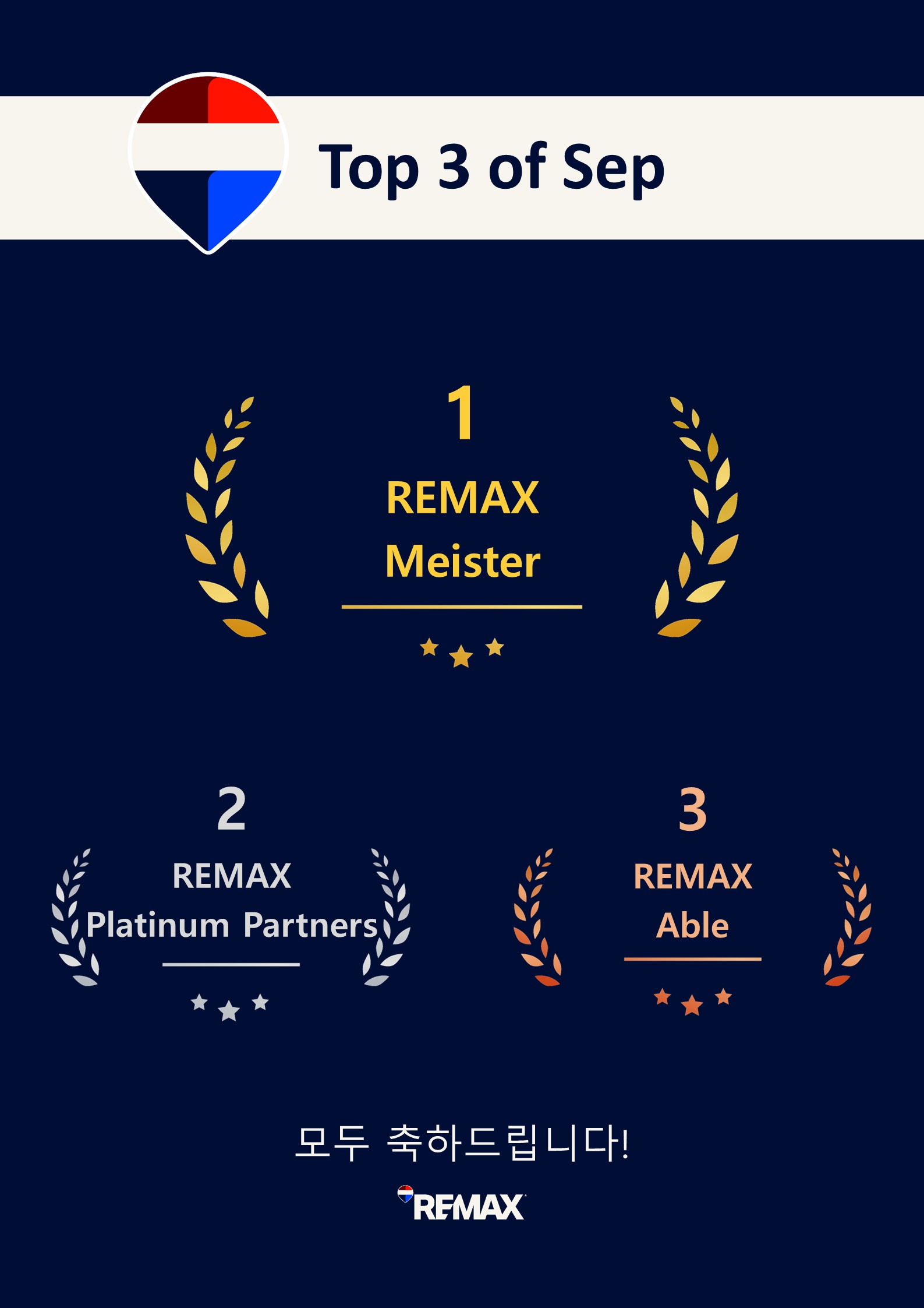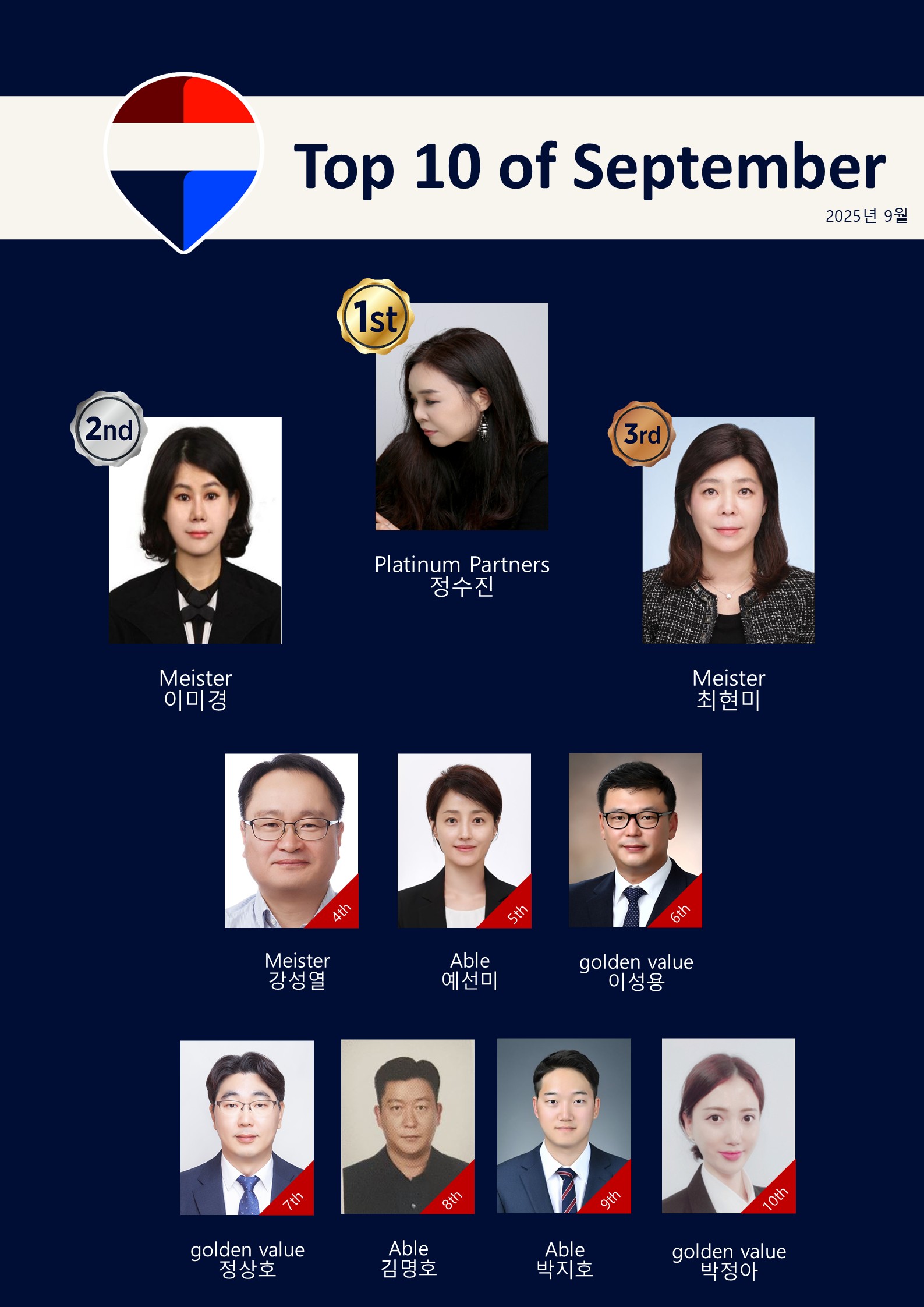 리맥스코리아(REMAX Korea)는 2025년 9월 실적을 기준으로 한 ‘TOP 10 에이전트’와 ‘TOP 3 가맹사’, 그리고 1월부터 9월까지의 누적 성과를 기록한 ‘TOP 20 에이전트’를 공개했다.